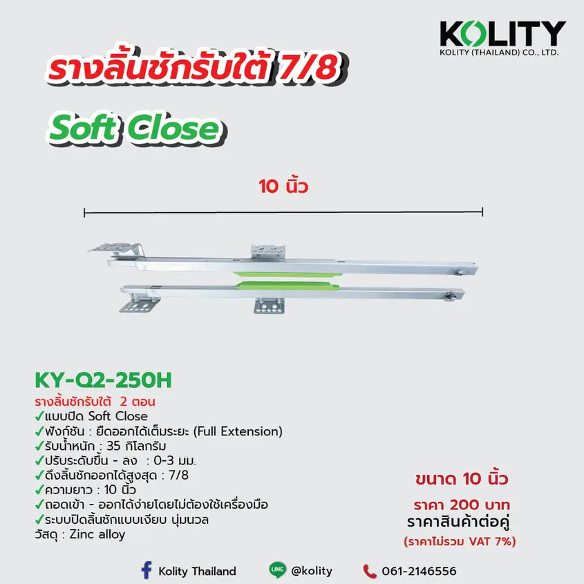 รางลิ้นชักแบบรับใต้ Kolity Thailand เป็นผลิตภัณฑ์ที่ช่วยเพิ่มความสวยงามและการใช้งานที่เงียบให้กับลิ้นชัก ด้วยการออกแบบที่ช่วยให้ลิ้นชักเลื่อนได้ลื่นไหลและเงียบ รางลิ้นชักแบบรับใต้จาก Kolity เหมาะกับลิ้นชักในตู้เก็บเครื่องใช้ในครัว หรือลิ้นชักในตู้เก็บเสื้อผ้าที่ต้องการดีไซน์เรียบง่าย ด้วยวัสดุที่แข็งแรงและทนต่อการใช้งานหนัก รางลิ้นชักแบบรับใต้ Kolity Thailand ช่วยให้ลิ้นชักเปิด-ปิดได้ง่ายและทนทาน ดีไซน์ที่ซ่อนรางไว้ใต้ลิ้นชักช่วยให้ตู้ดูสวยงามและทันสมัย